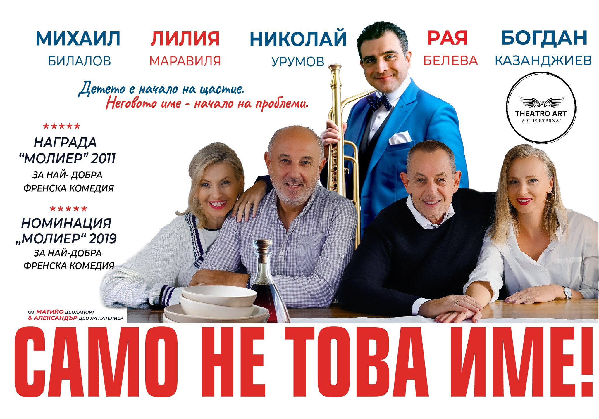 „САМО НЕ ТОВА ИМЕ!“ е комедия с френски вкус – елегантна, интелигентна и опасно забавна. Гарантирано ще се смеете, ще се замислите и накрая ще си тръгнете с облекчението, че вашето семейство не е чак толкова драматично.